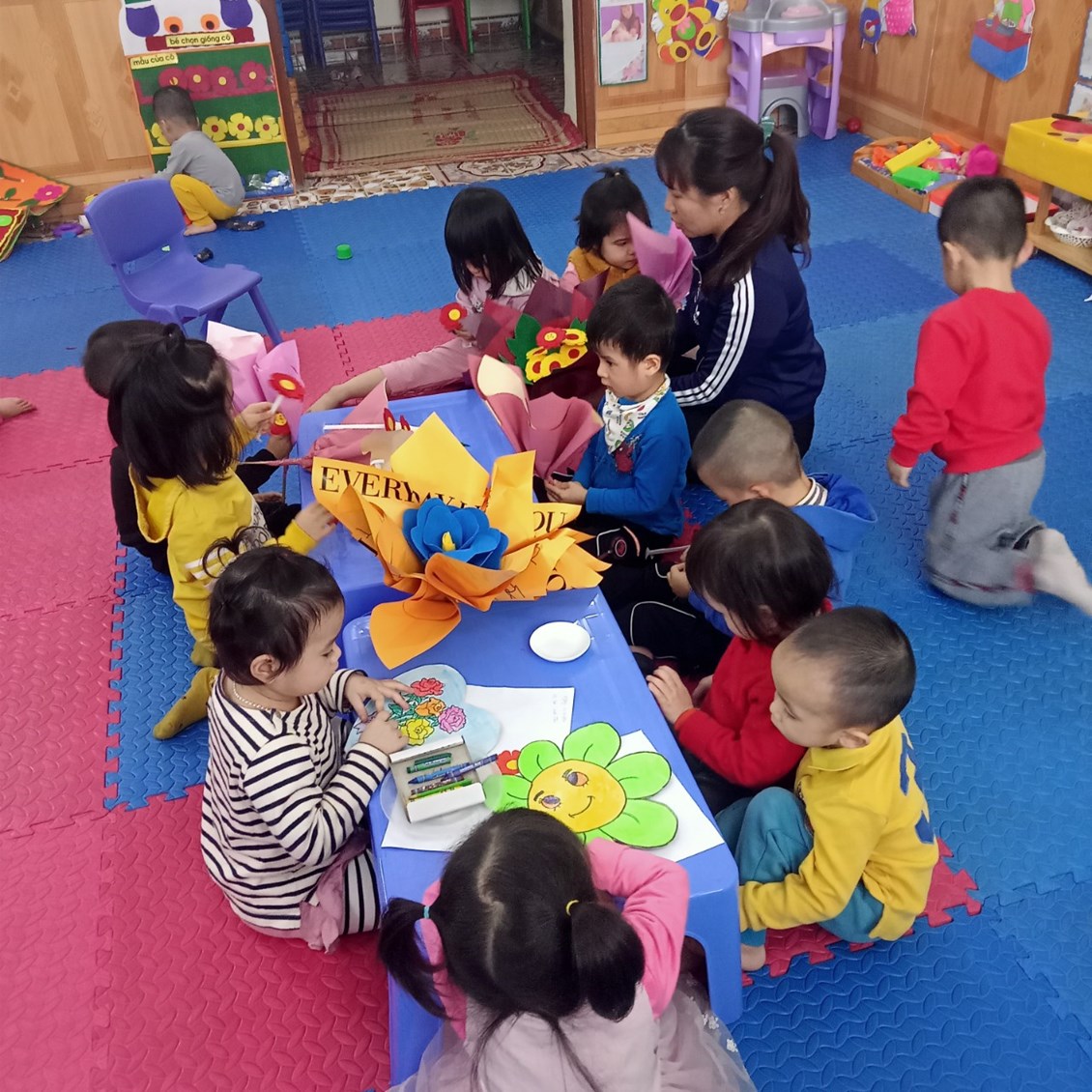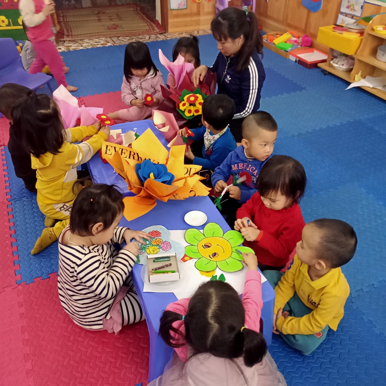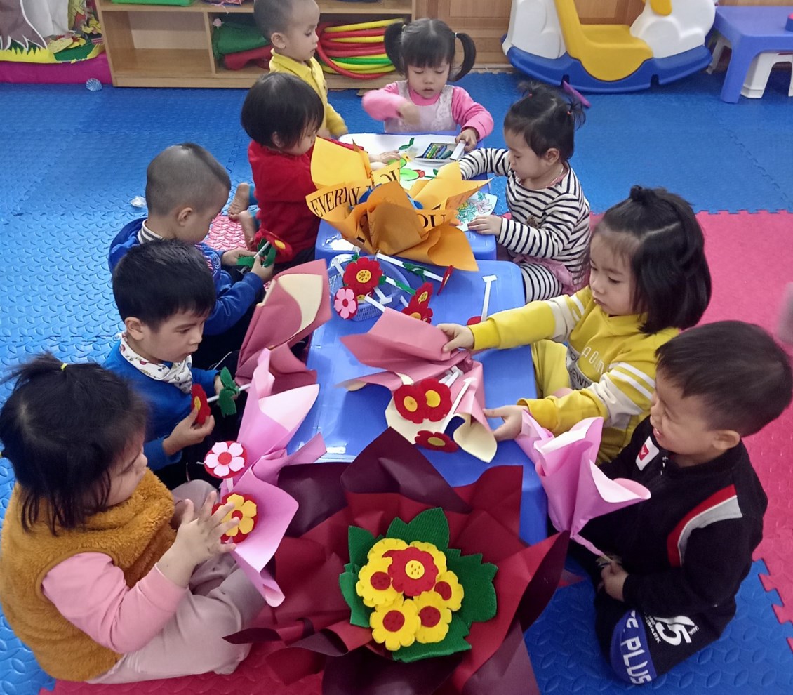 Mẹ là người phụ nữ đầu tiên của mỗi chúng ta. Dáng hình con và cả mỗi bữa ăn, giấc ngủ, mỗi bước đi của con đều có bóng dáng của mẹ. Ngày Quốc tế phụ nữ 8/3 đang đến gần. Ngày hôm nay, cô và các bé khối nhà trẻ đã và đang cùng nhau chuẩn bị những món quà để bé chuẩn bị dâng tặng lên những người bà, người mẹ, cô giáo - những người phụ nữ thân yêu nhất của bé. Những món quà giản dị mà vô cùng ý nghĩa là lời cảm ơn sâu sắc nhất tới những người phụ nữ thân yêu. Chúc các bà, các mẹ, các cô giáo luôn mạnh khỏe, xinh đẹp và hạnh phúc!