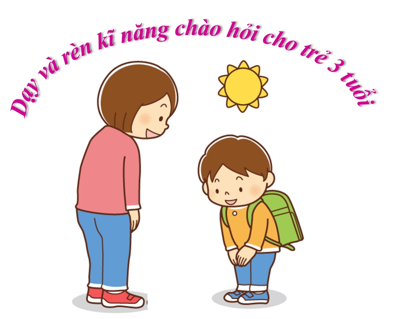 Trong công tác giáo dục kỹ năng sống đặc biết là kỹ năng chào hỏi trong mỗi nhà trường ở các cấp học nhất là cấp học mầm non cần đặc biệt chú trọng đến công việc này. Để mỗi đứa trẻ thực sự là những học sinh ngoan, lễ phép với cha mẹ, cô giáo và người lớn tuổi, các lớp trong nhà trường cần đưa yếu tố này vào tiêu chí đầu tiên mang tính quy định trong rèn luyện kỹ năng sống cho trẻ. Lời chào, sự lễ phép của trẻ đối với thầy cô, người lớn tuổi là một phẩm chất, một kỹ năng không thể thiếu đối với trẻ ở tất cả các độ tuổi. Đó là yếu tố đặc biệt quan trọng trong nhân cách của một đứa trẻ và có ảnh hưởng lớn đến kỹ năng giao tiếp công việc, hoạt động xã hội của trẻ trong tương lai. Nhưng làm thế nào để một đứa trẻ có thói quen chào hỏi và chào hỏi đúng cách thì đòi hỏi giáo viên phải có tâm, luôn làm gương cho trẻ, dạy trẻ mọi lúc mọi nơi, trong mọi hoạt động khi trẻ ở trường; với nhiều hình thức như trò chuyện, quan sát tranh ảnh, thực hành.