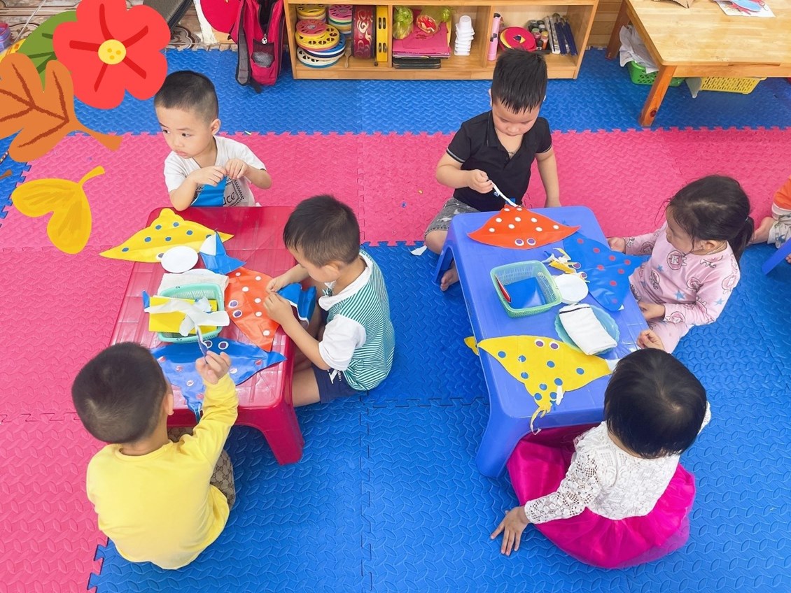 Với chủ đề "Mùa hè bé yêu", ngày hôm nay (19/4/2023), các bé lớp 3 tuổi C2 được tham gia giờ học "Xé dán đuôi diều". Giờ học đã thu hút được tất cả các bé tham gia. Điều đó thể hiện qua sự say sưa khi thực hiện và những sản phẩm ngộ nghĩnh, đẹp mắt do chính tay các bé làm nên.