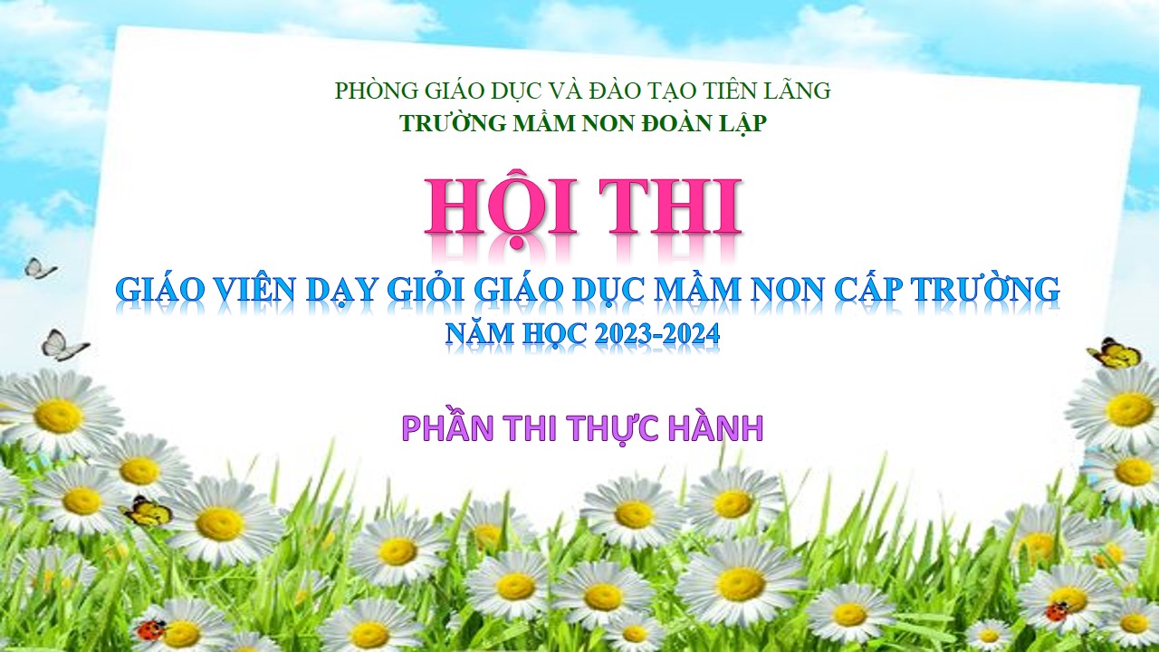 Tiếp tục thực hiện kế hoạch số 51/KH-MNĐL kế hoạch tổ chức Hội thi giáo viên dạy giỏi giáo dục mầm non cấp trường năm học 2023-2024, trường Mầm non Đoàn Lập đã tổ chức phần thi thực hành. Tham dự phần thi có 22 tiết dạy của 22 đồng chí giáo viên đã tham gia phần thi thuyết trình các biện pháp góp phần nâng cao chất lượng công tác chăm sóc, nuôi dưỡng, giáo dục trẻ tại nhà trường.