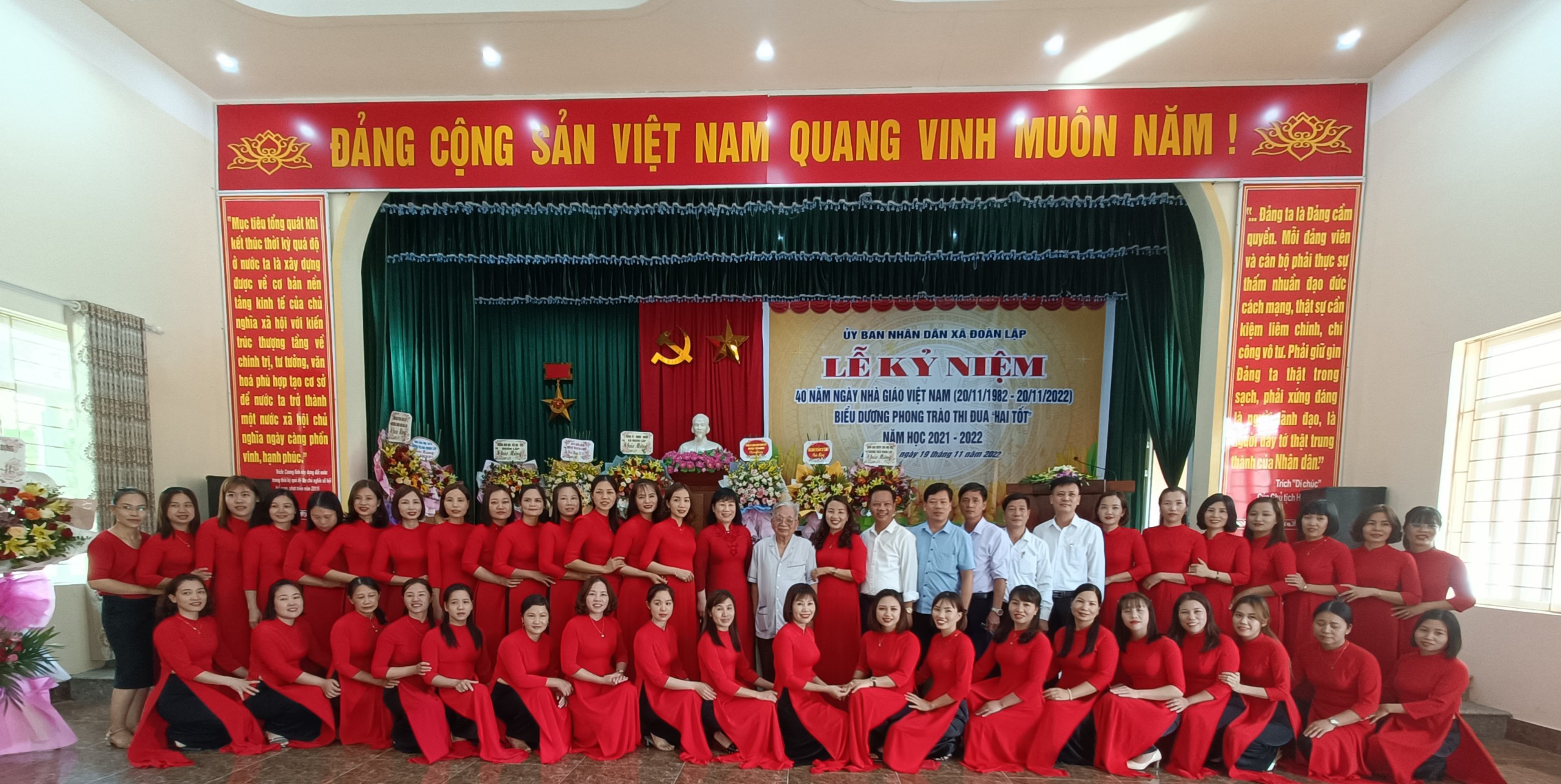 Tiếp nối truyền thống quý báu của dân tộc ta, sáng ngày 19/11/2022, Đảng ủy, HĐND, UBND, UBMTTQ Việt Nam xã Đoàn Lập đã tổ chức Lễ kỷ niệm 40 năm ngày Nhà giáo Việt Nam và biểu dương phong trào thi đua "Hai tốt" năm học 2021-2022. Về dự Lễ kỷ niệm có: