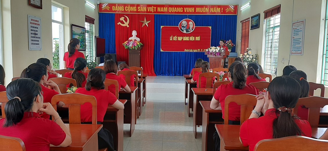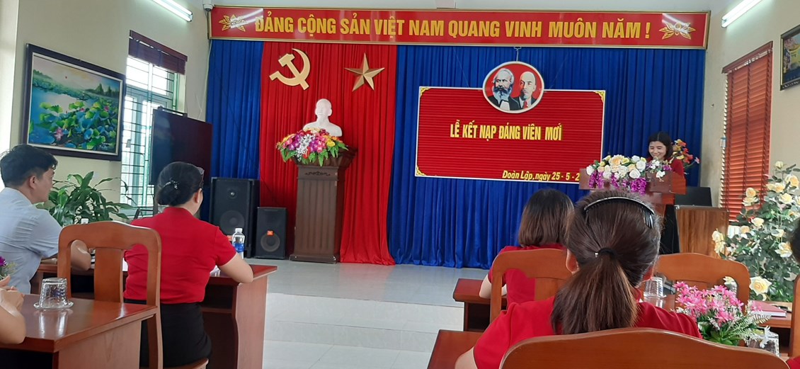 Hôm nay, ngày 25/5/2023, được sự đồng ý của Đảng ủy xã Đoàn Lập, Chi bộ trường mầm non tổ chức Lễ kết nạp đảng viên cho quần chúng Vũ Thị Thùy vào Đảng Cộng sản Việt Nam.