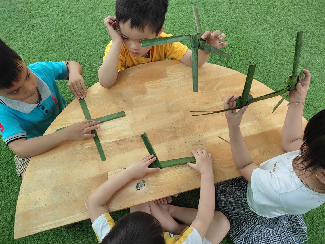 Với những chiếc lá, trẻ có thể làm ra rất nhiều sản phẩm ngộ nghĩnh, đáng yêu như: con trâu, tranh thuyền và biển, đồng hồ đeo tay, chong chóng…