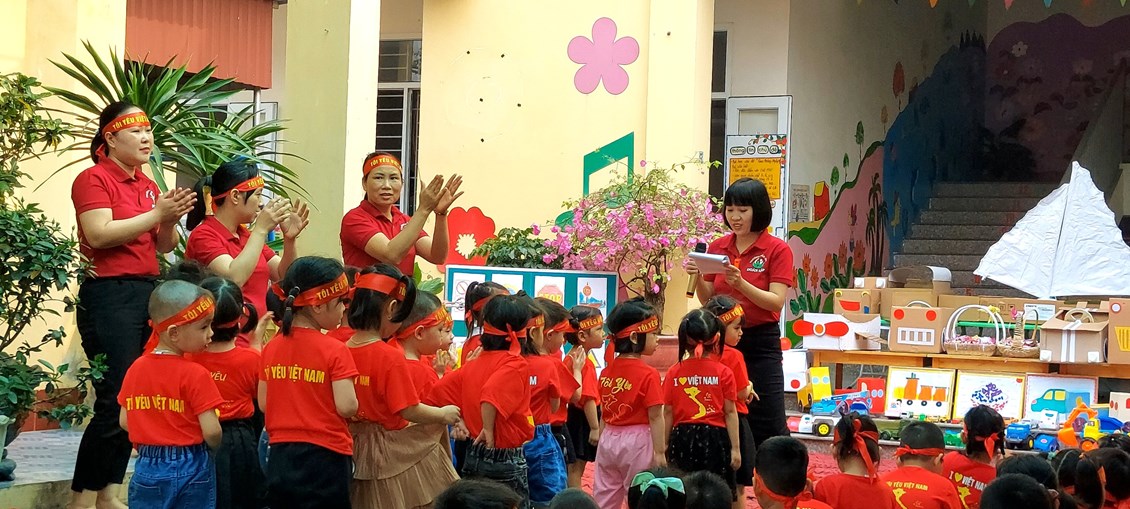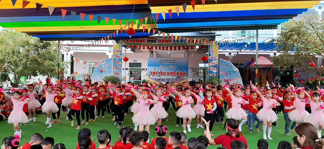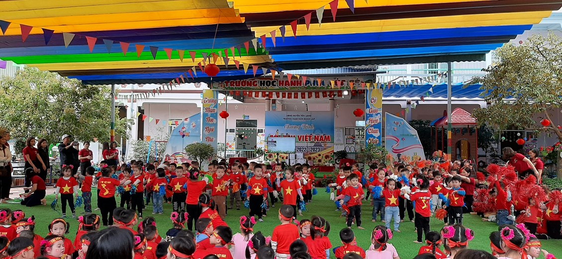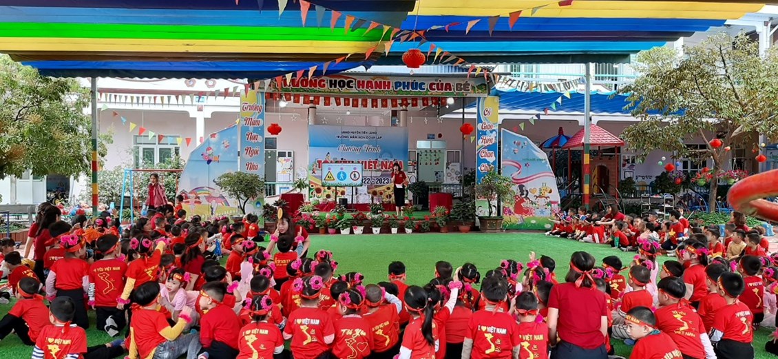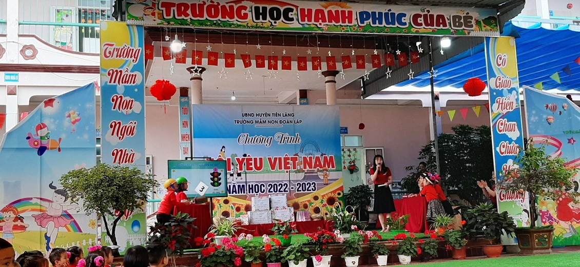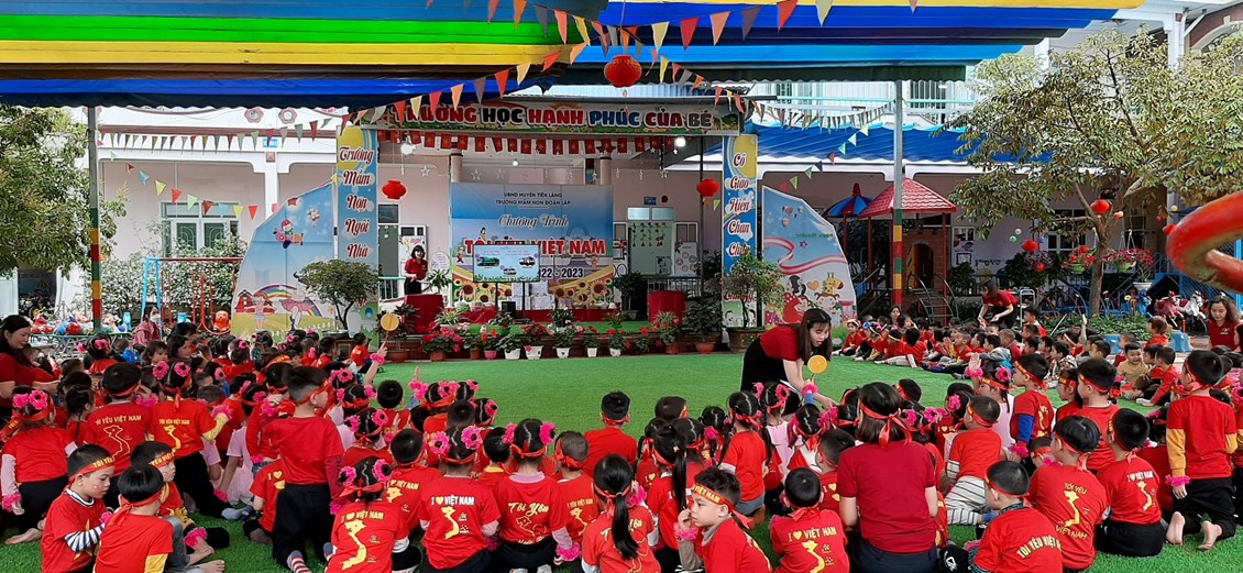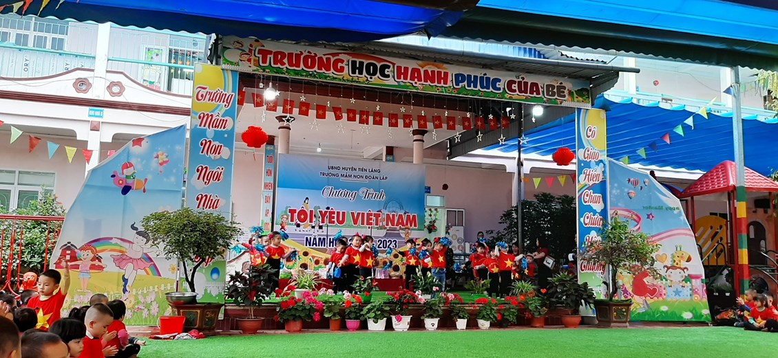 Thực hiện Lịch công tác số 03/LCT-MNĐL ngày 01/3/2023 Lịch công tác tháng 3/2023 của trường Mầm non Đoàn Lập, ngày 15/3/2023, nhà trường đã tổ chức Chương trình "Tôi yêu Việt Nam" cho các bé. Về dự chương trình có Ban đại diện cha mẹ học sinh nhà trường và các lớp; cán bộ, giáo viên, nhân viên và 100% trẻ khối mẫu giáo của nhà trường.