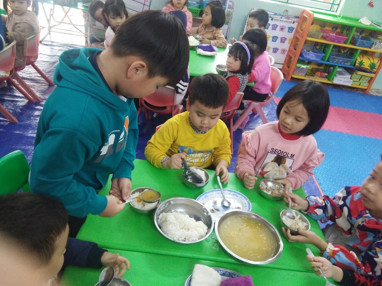 Ảnh 5: Bé trực nhật chia cơm